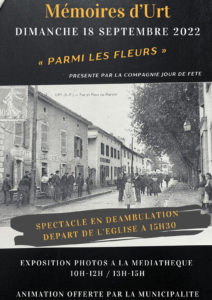 Affiche journée patrimoine 2Commission Communication2022-09-14T07:03:09+02:00 affiche annonçant le spectacle “parmi les fleurs” à Urt